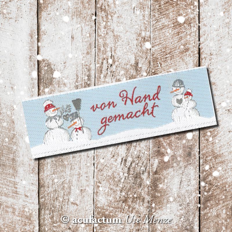 【acufactum305】 約2cm×約5.5cm-スノ-マン 雪だるまのタグ ラベル 織ネーム