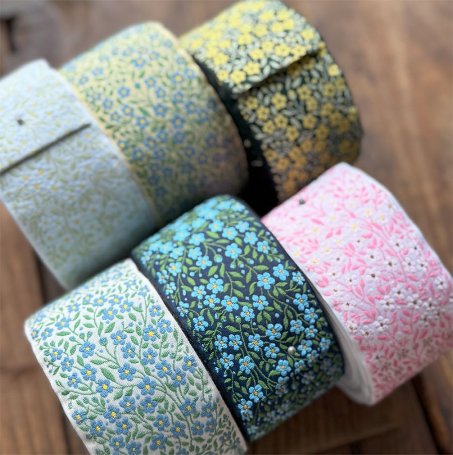 【9色/12mm幅】No,17 ピコ付小花柄チロリアンテープ ジャガードリボン 日本製