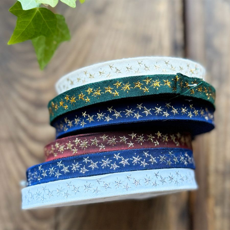 KAFKA カフカ社【50cm単位】約幅10mm細幅!アスタリスク・星屑・スターダスト柄ジャガードリボン