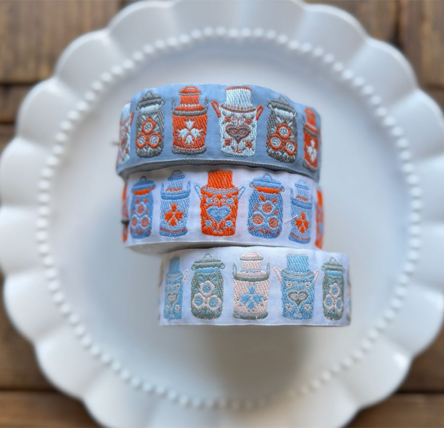 KAFKA カフカ社【50cm単位】約幅32mm-ミルク缶柄のジャガードリボン