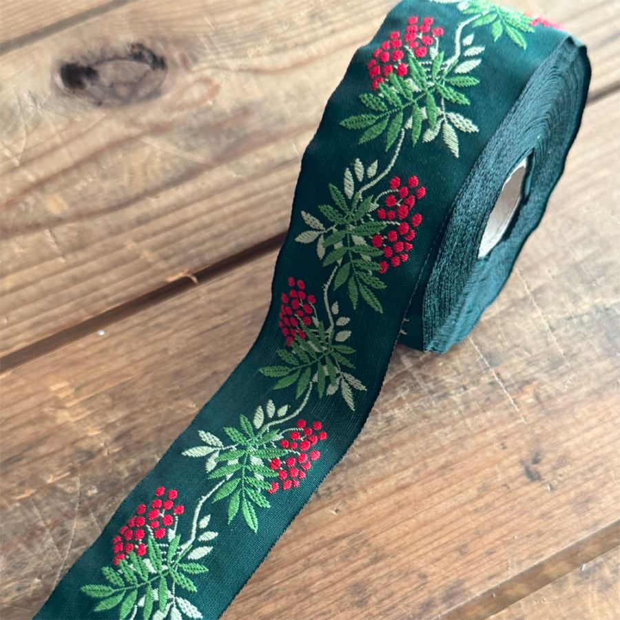 KAFKA【50cm単位】約幅32mm ナナカマド お花柄のジャガードリボン チロリアンテープ