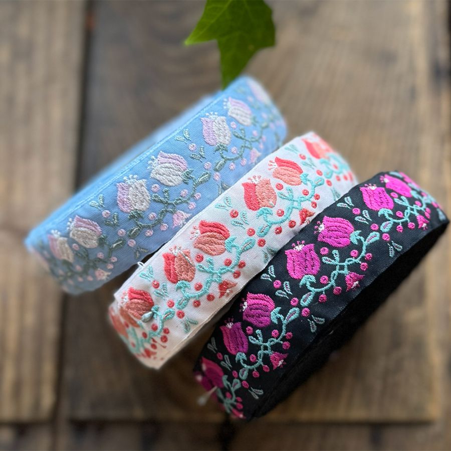 【50cm単位】acufactum367 約幅16mm チューリップ柄のジャガードリボン チロリアンテープ
