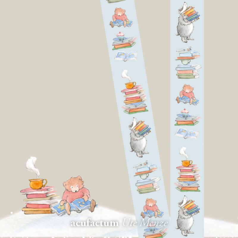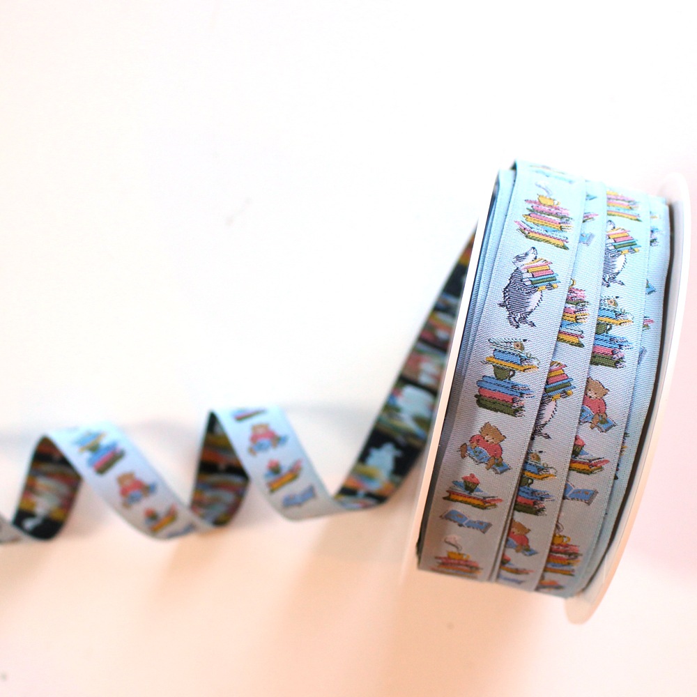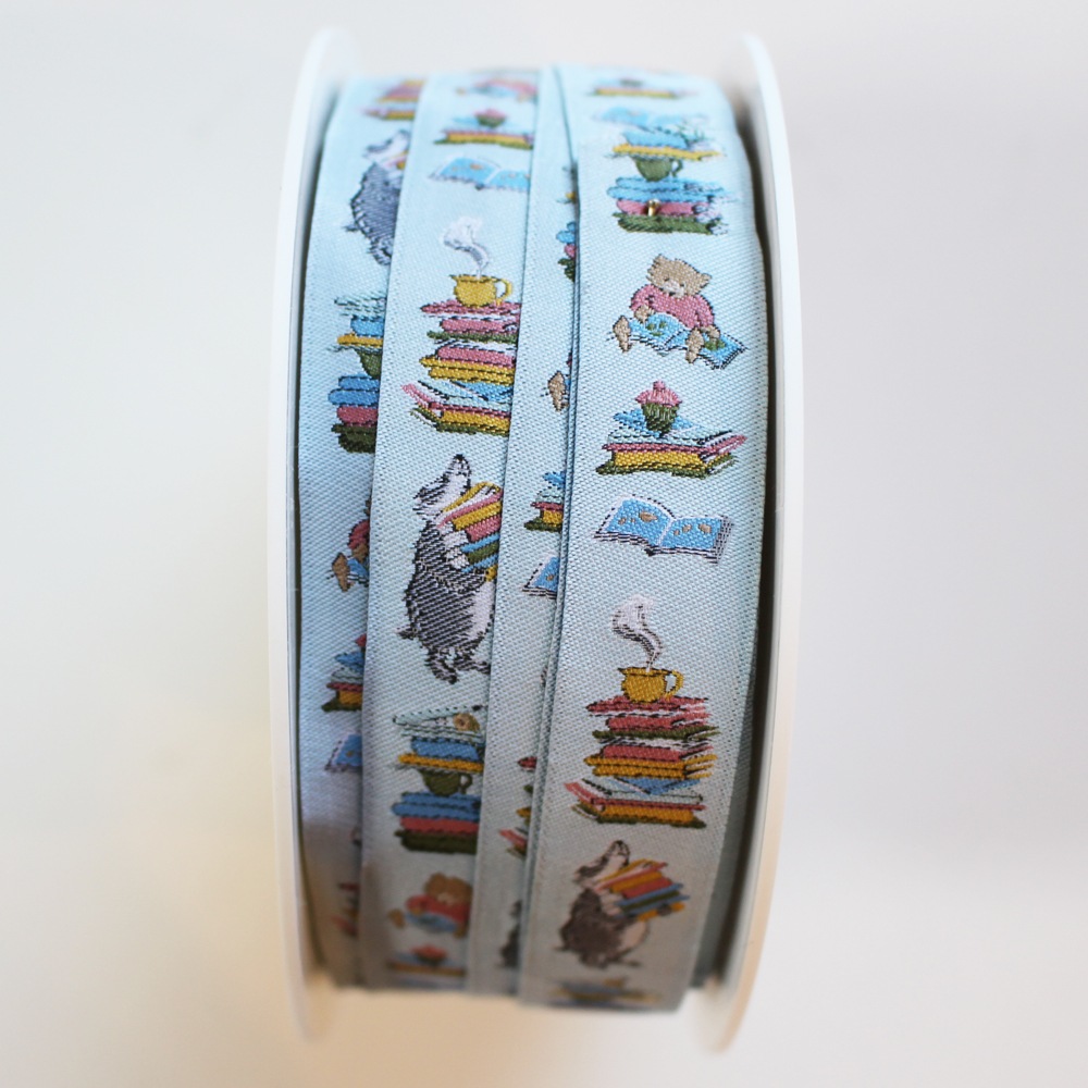 【50cm単位】acufactum372 約幅16mm 動物たちの読書時間柄のジャガードリボン チロリアンテープ