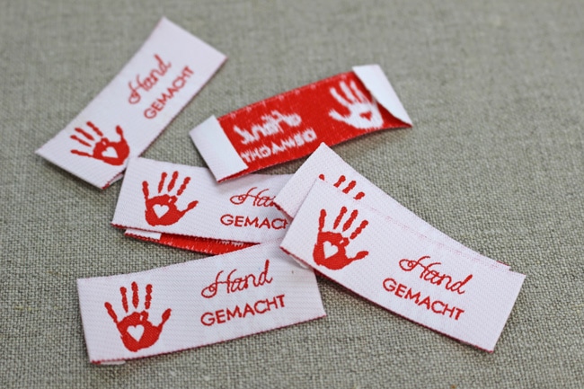 【acufactum】約2cm×約5cm幅-赤い掌にハートHandgemachtのタグ