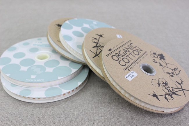 【2幅/7色】No,1205オーガニックコットンリボン ステッチ柄テープ 6mm・12mm/日本製