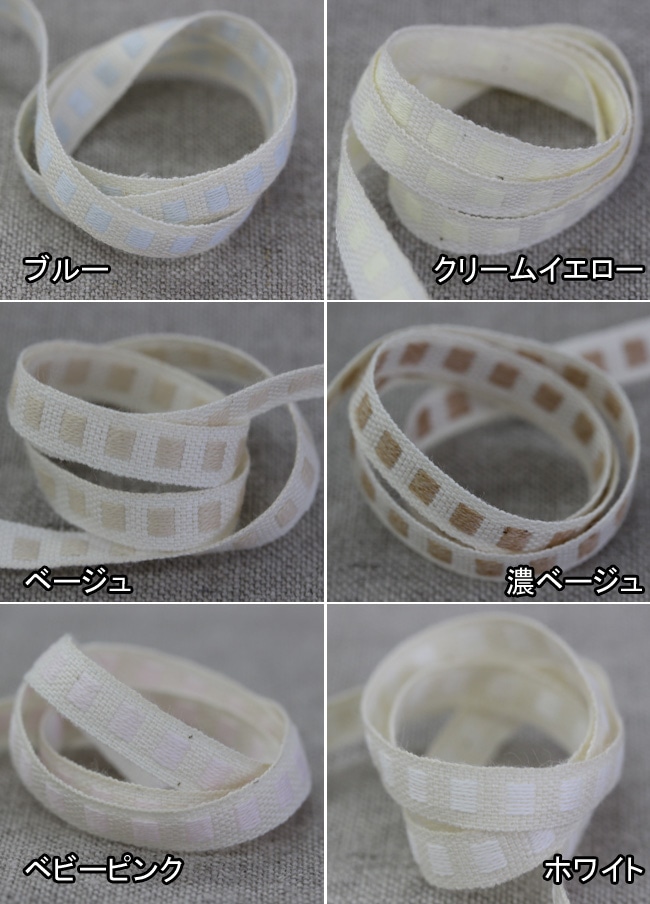 オーガニックコットンリボンのスクエアドット柄です。