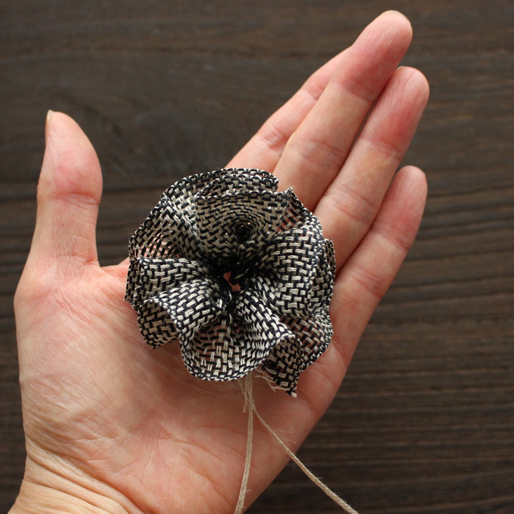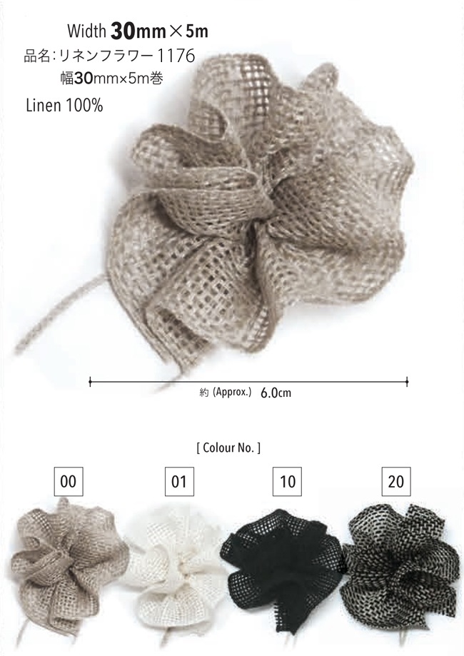 ★5.8cm幅★【5m巻】No,1176-58mm リネンフラワーリボン ワンタッチフラワー クシュクシュリボン