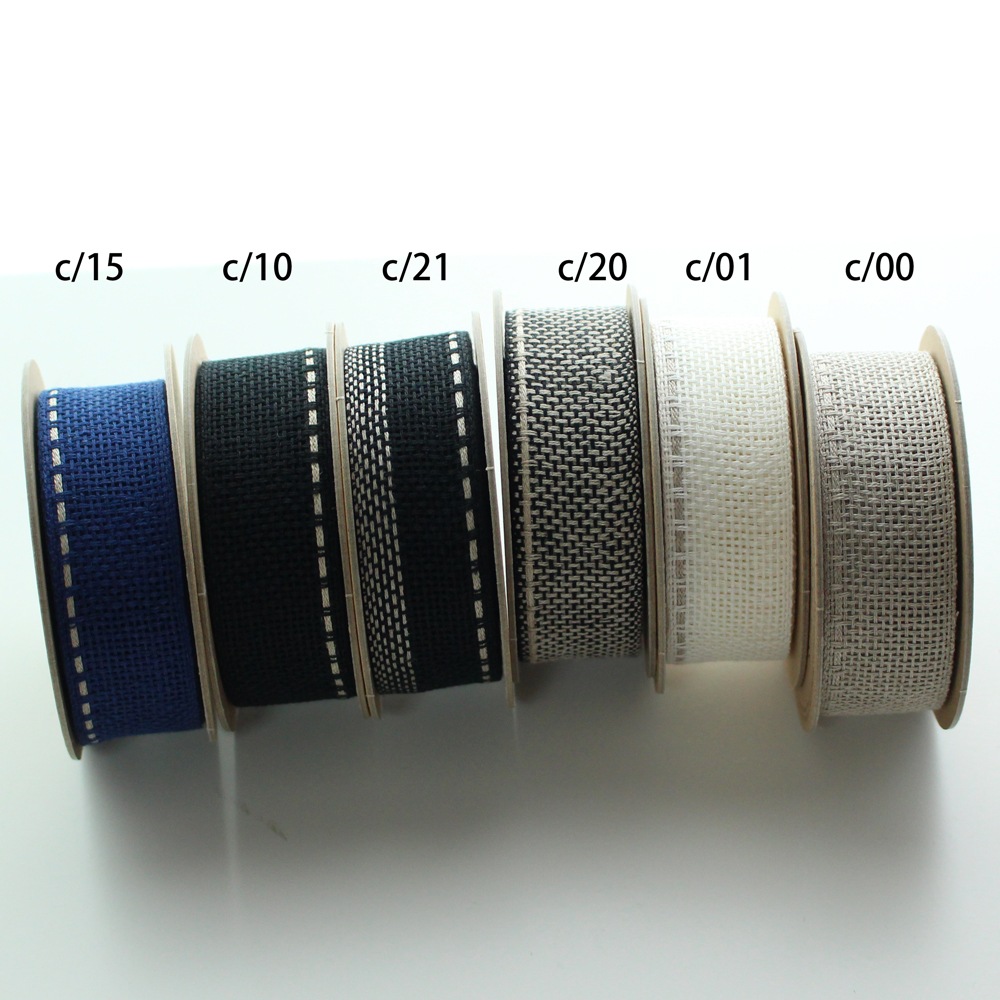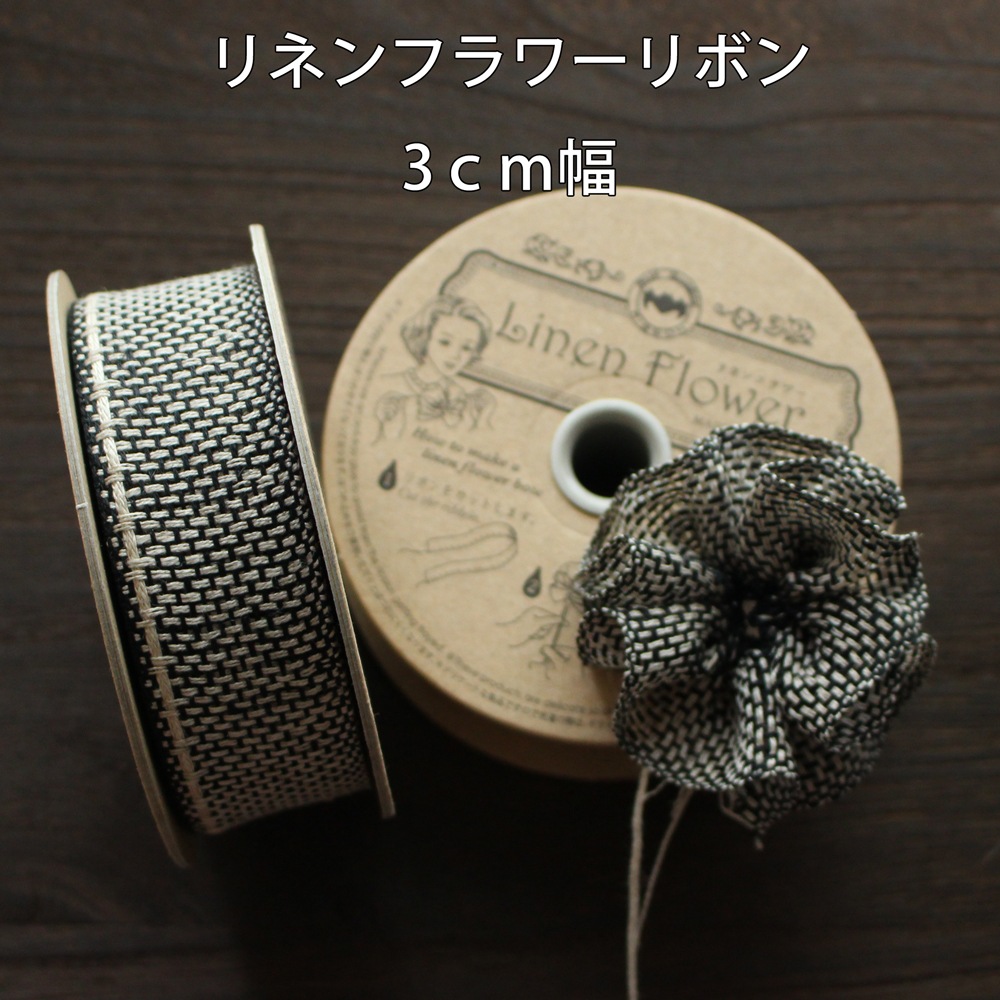 ★4cm幅★No,1176-40mm リネンフラワーリボン 1反5m巻 クシュクシュリボン