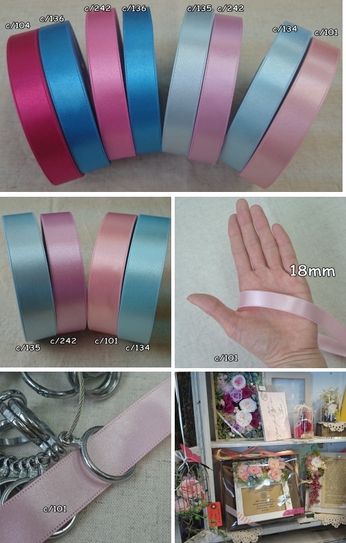 細幅から広幅まで展開のある使いやすい両面サテンリボンです。