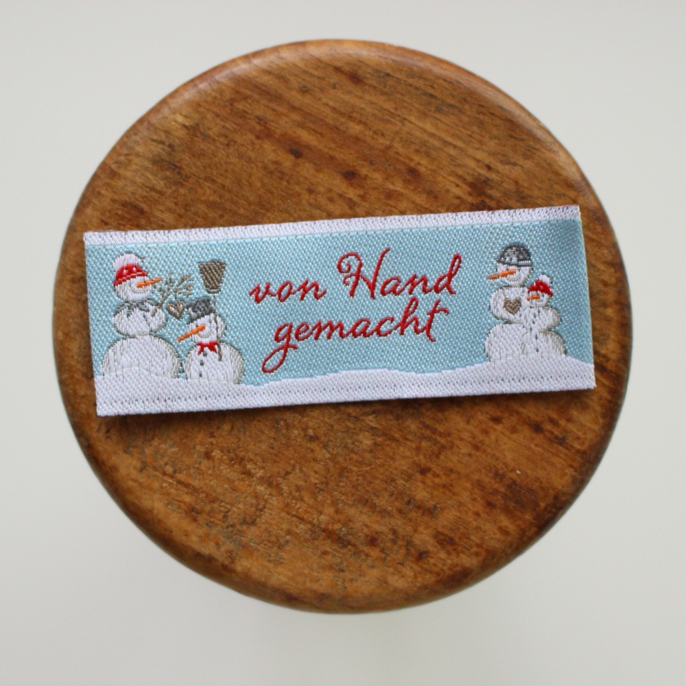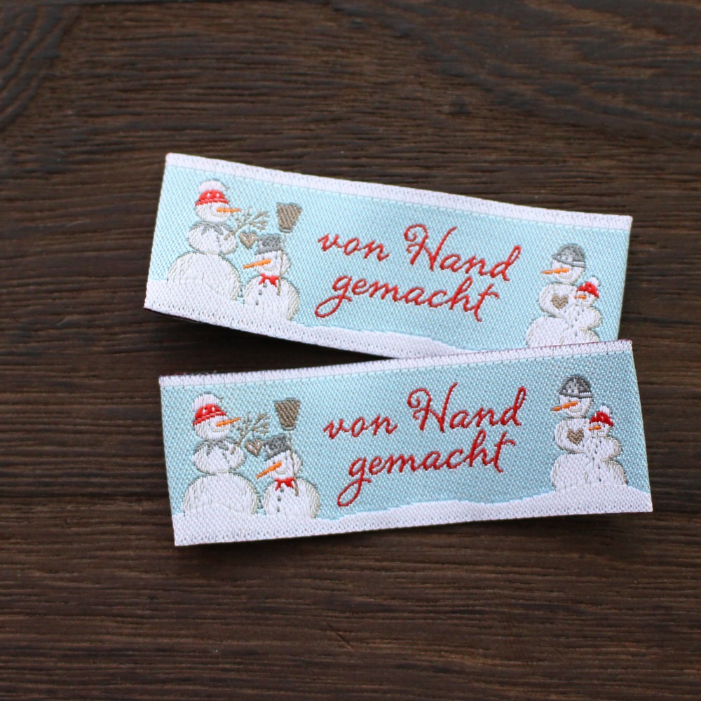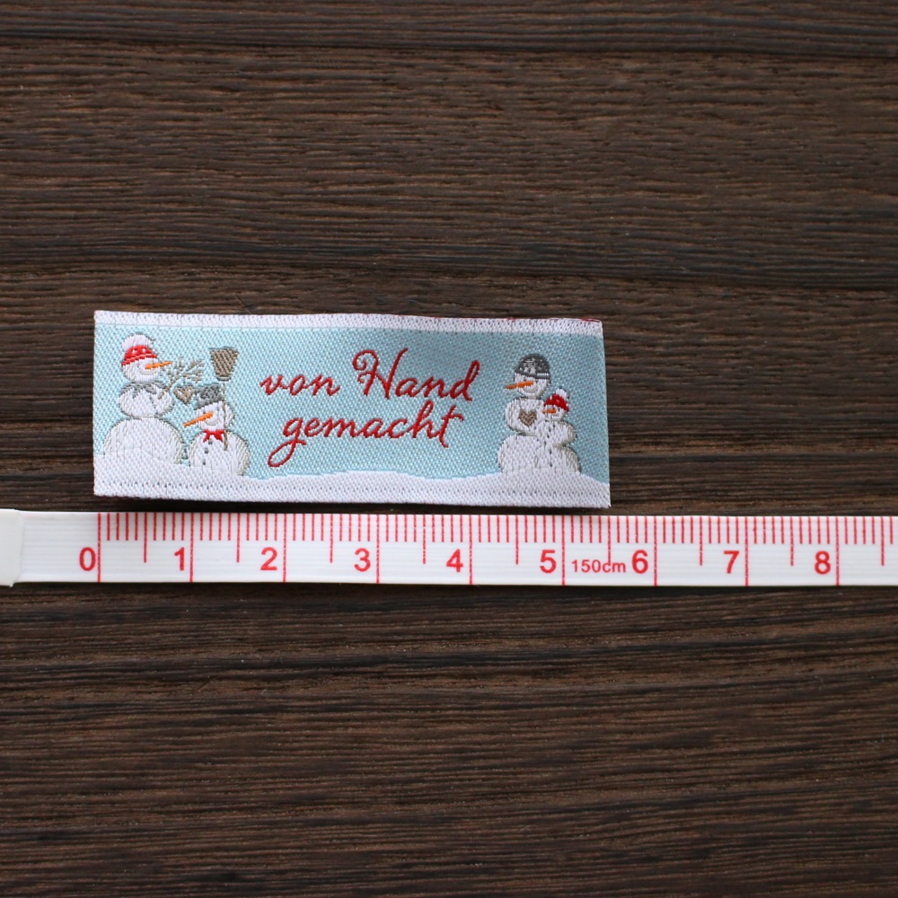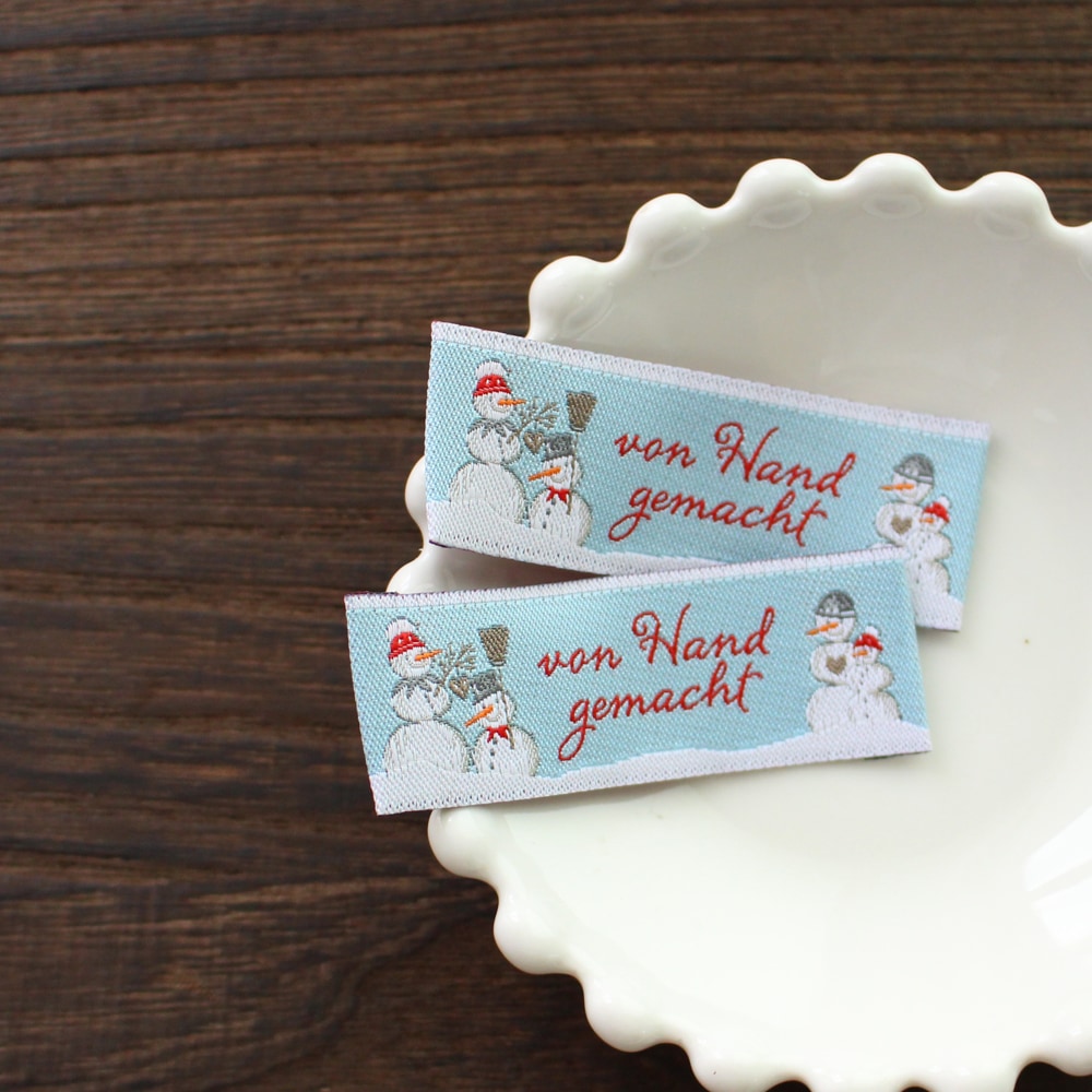 【acufactum305】 約2cm×約5.5cm-スノ-マン 雪だるまのタグ ラベル 織ネーム