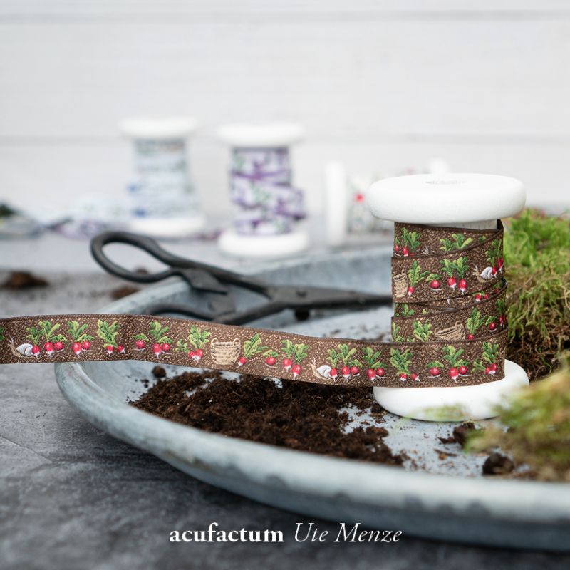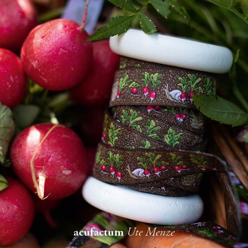 【50cm単位】acufactum331 約幅16mm ラディッシュ柄のジャガードリボン チロリアンテープ