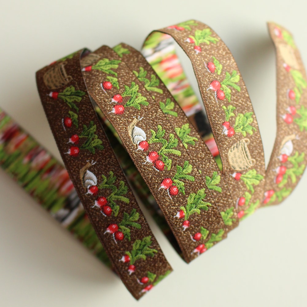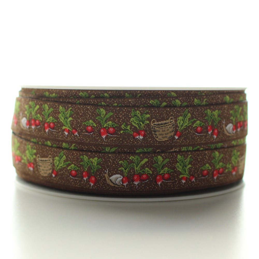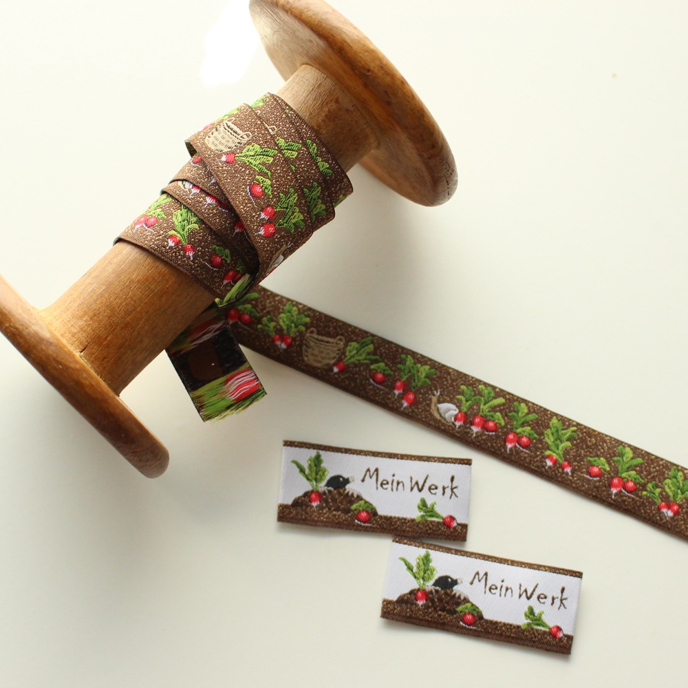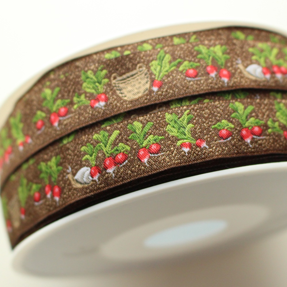 【50cm単位】acufactum237 約幅16mm にんじん・野菜畑柄のジャガードリボン チロリアンテープ