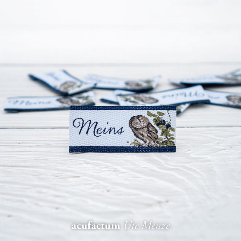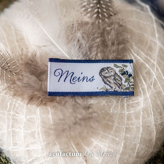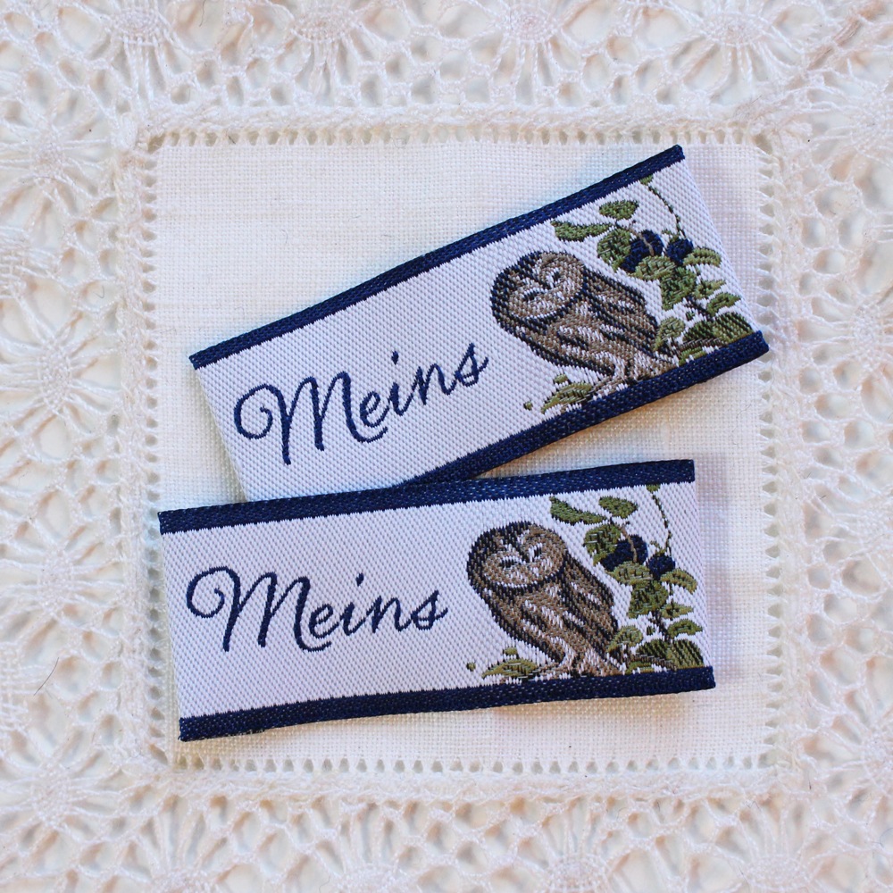 【acufactum337】 約2cm×約4.5cm-ふくろうのタグ ラベル 織ネーム