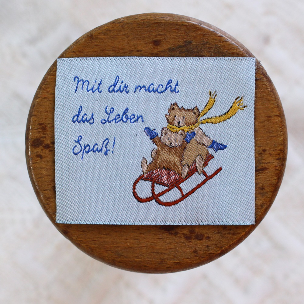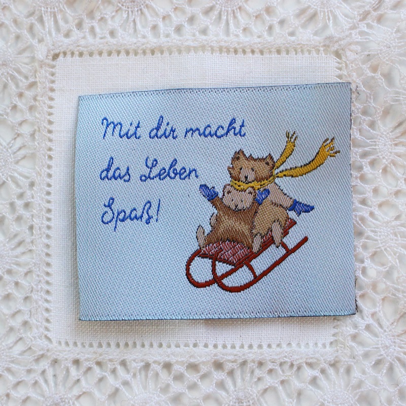 【acufactum382】 約5cm×約4cm--(大)ソリ遊びをする親子のクマのタグ ラベル 織ネーム