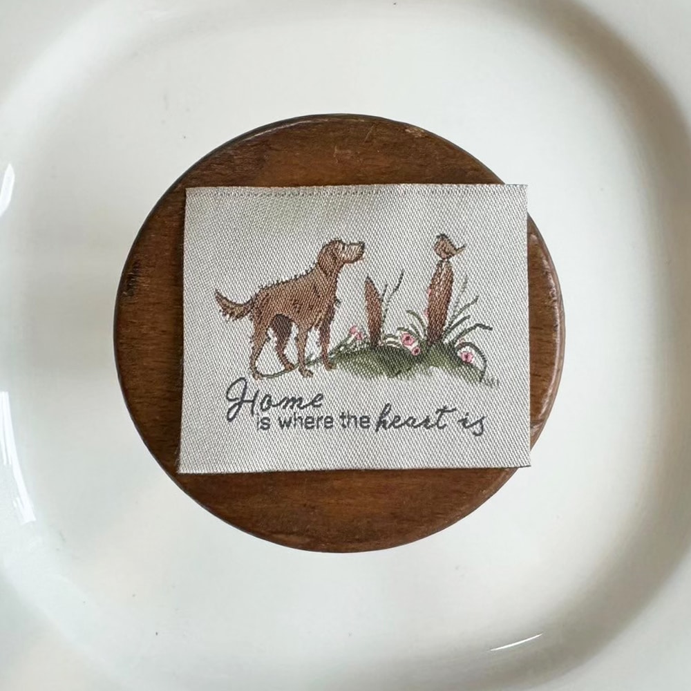 【acufactum396】 約5cm×約4cm--(大)犬と小鳥のタグ ラベル 織ネーム