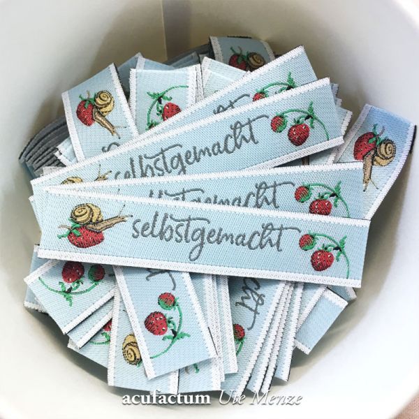 【acufactum290】 約1.6cm×約7.5cm幅 イチゴとカタツムリ・・・ピッパとペレシリーズ タグ ラベル 織ネーム