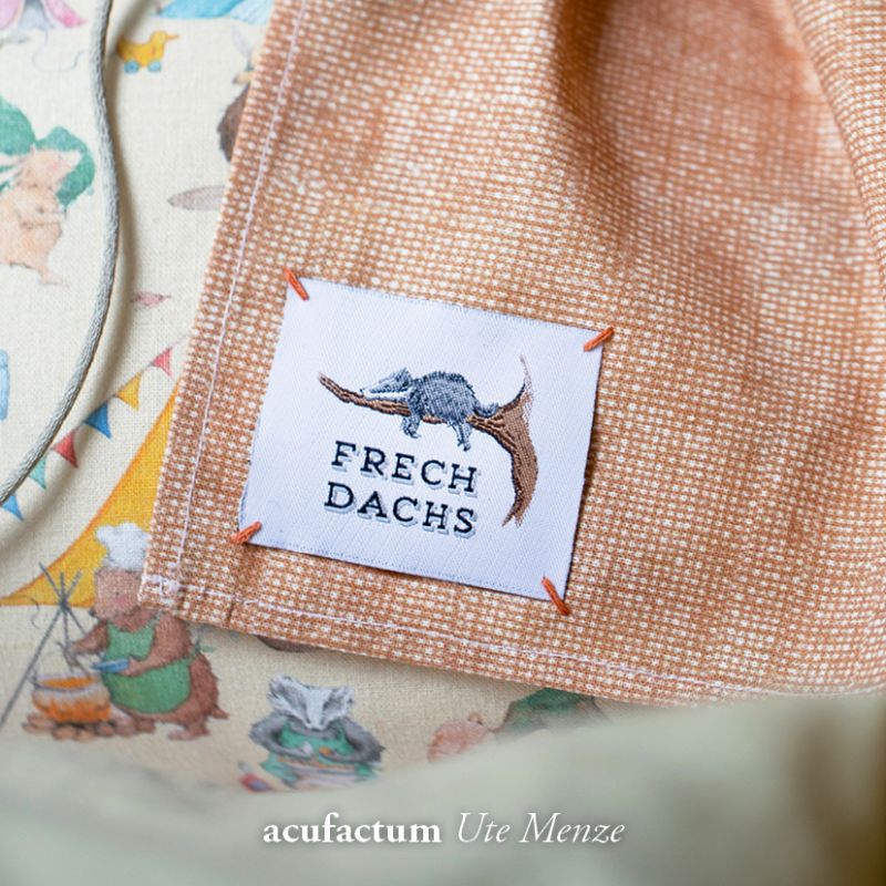 【acufactum359】 約5cm×約4cm--(大)アナグマのタグ ラベル 織ネーム