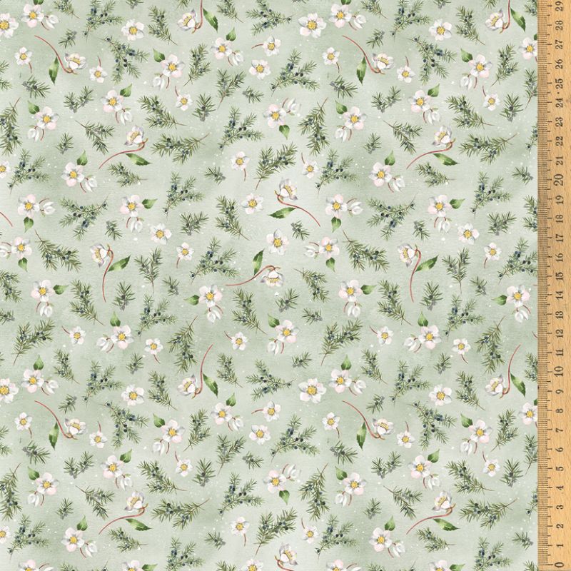 【145cm×50cm】ドイツ輸入生地 acufactum976 ミニクリスマスローズの生地/グリーン