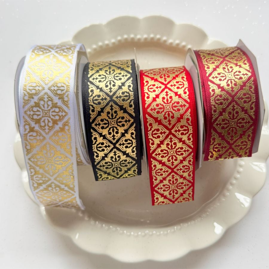 【ワイヤー入り】ダマスク クリスマスリボン-約38mm幅/全4色