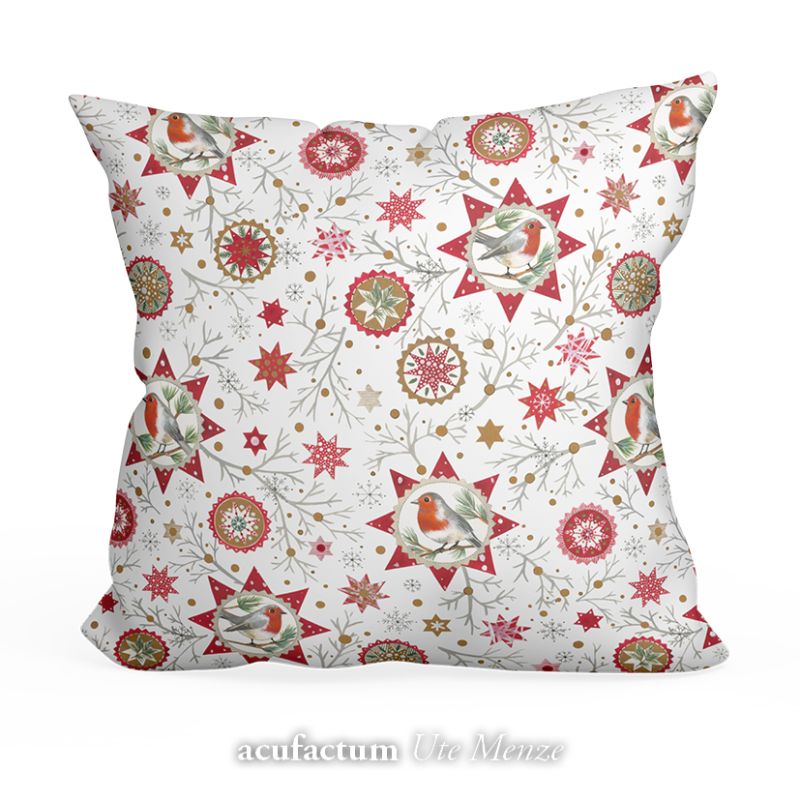 クリスマスオーナメントとロビン(小鳥)の生地です。