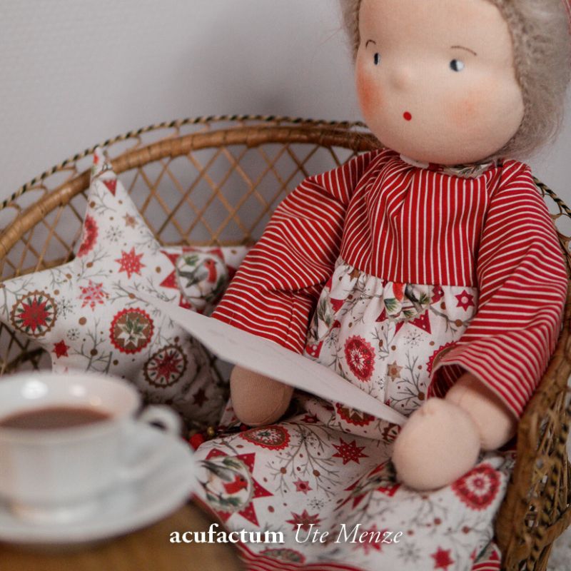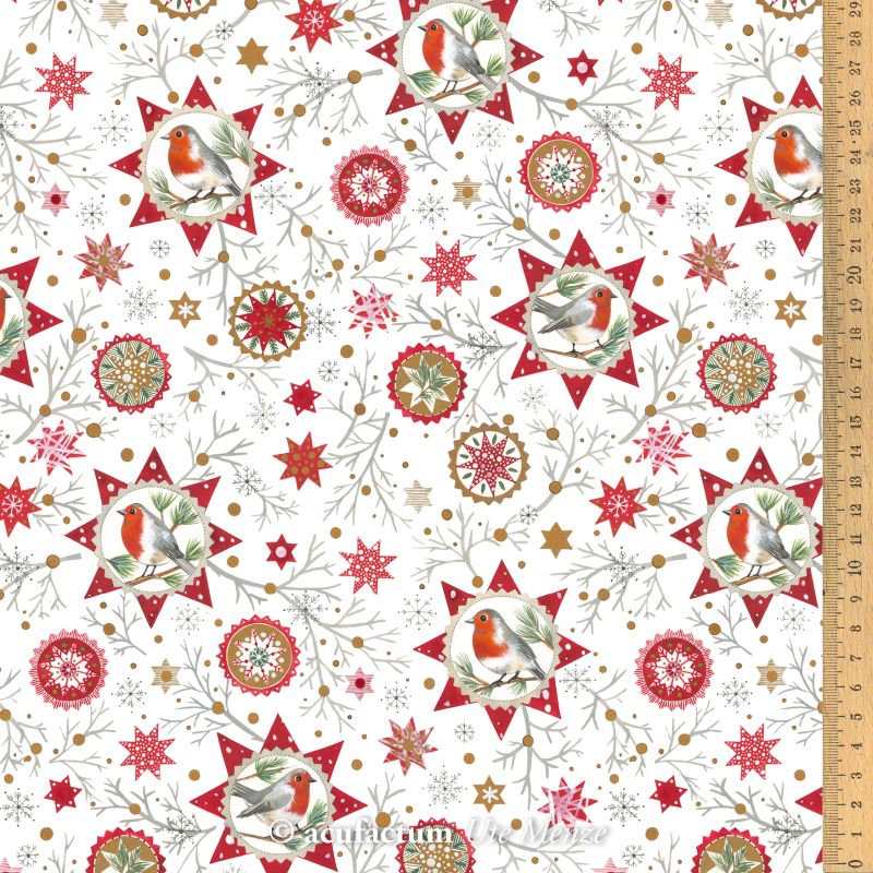 【145cm×50cm】ドイツ輸入生地 acufactum910 小鳥と星のクリスマスの生地
