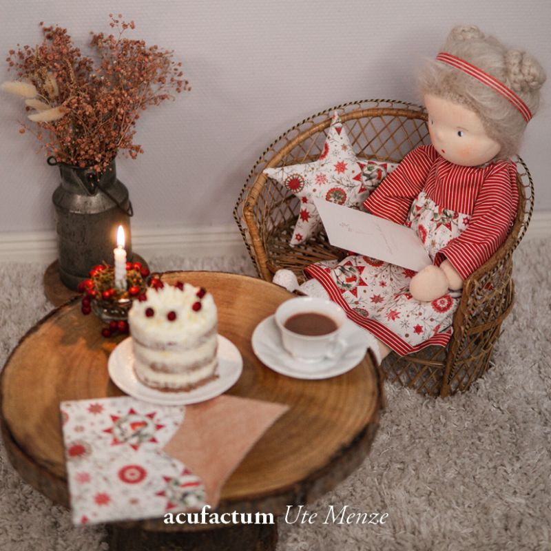 【145cm×50cm】ドイツ輸入生地 acufactum956 小鳥とお家とヒイラギのクリスマス生地