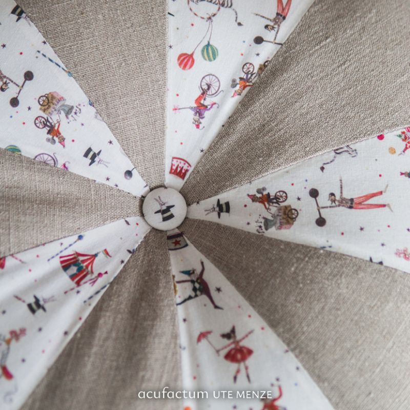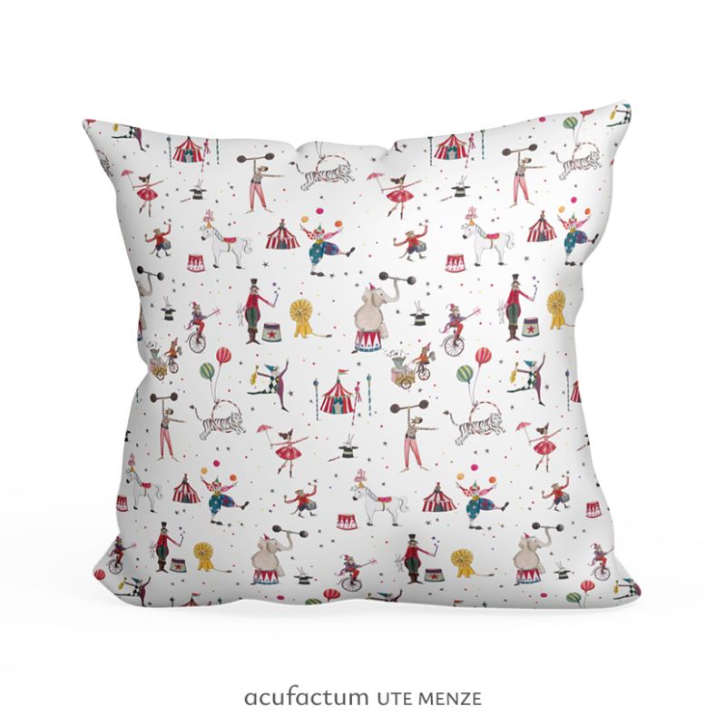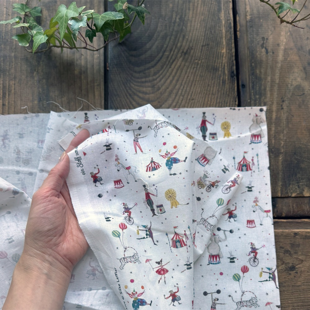 生命力とエネルギーに満ちたこの生地は、動物たちやアクロバットたちの躍動感あふれる姿を描き、サーカスの楽しさを子供心に呼び起こします。