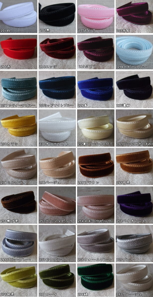 縁取りテープ・ベルベットテープ【3幅/24色】5m巻き 小巻