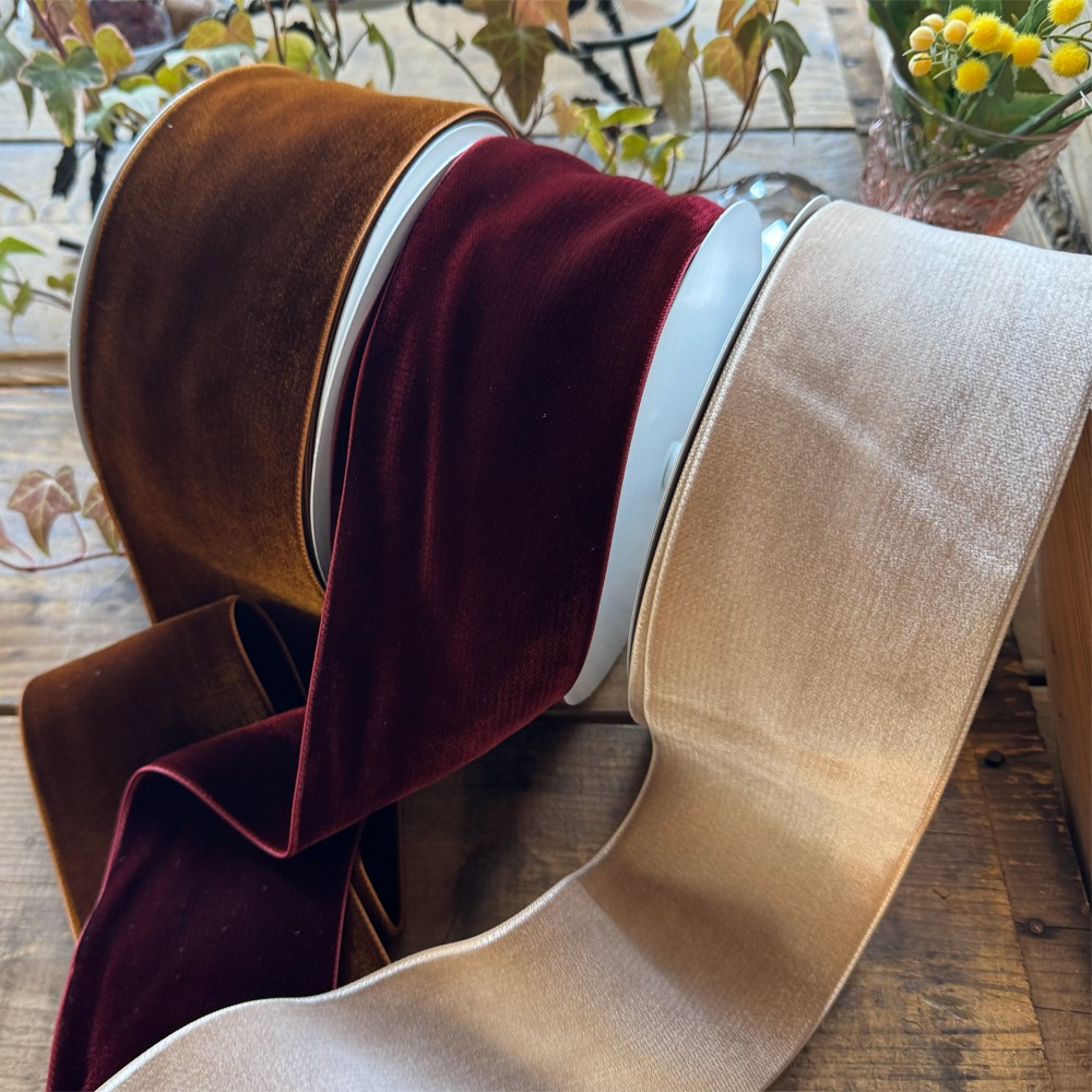上質なベルベット素材を使用した、両面ベロアリボンです。